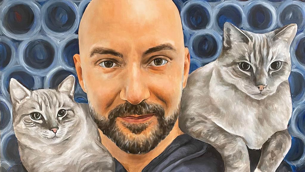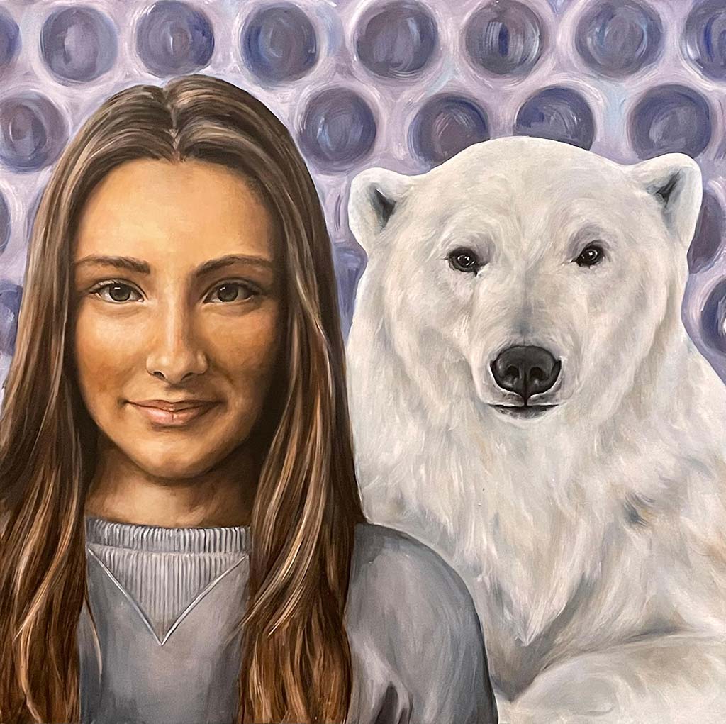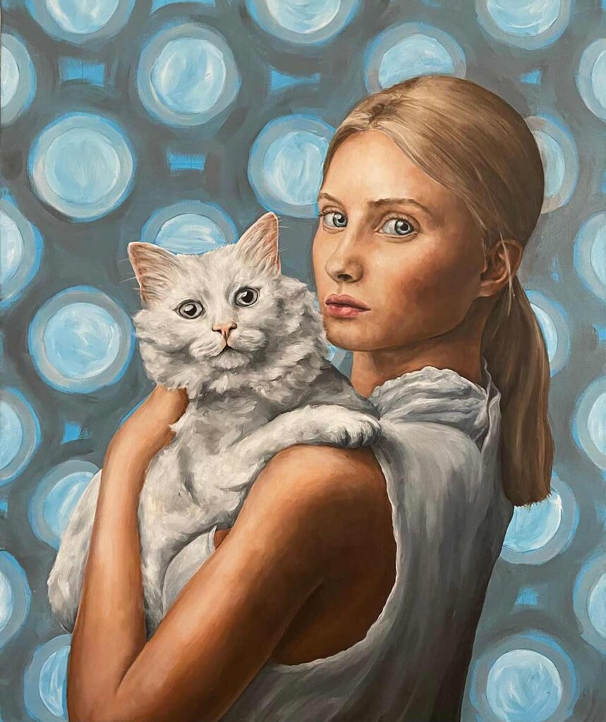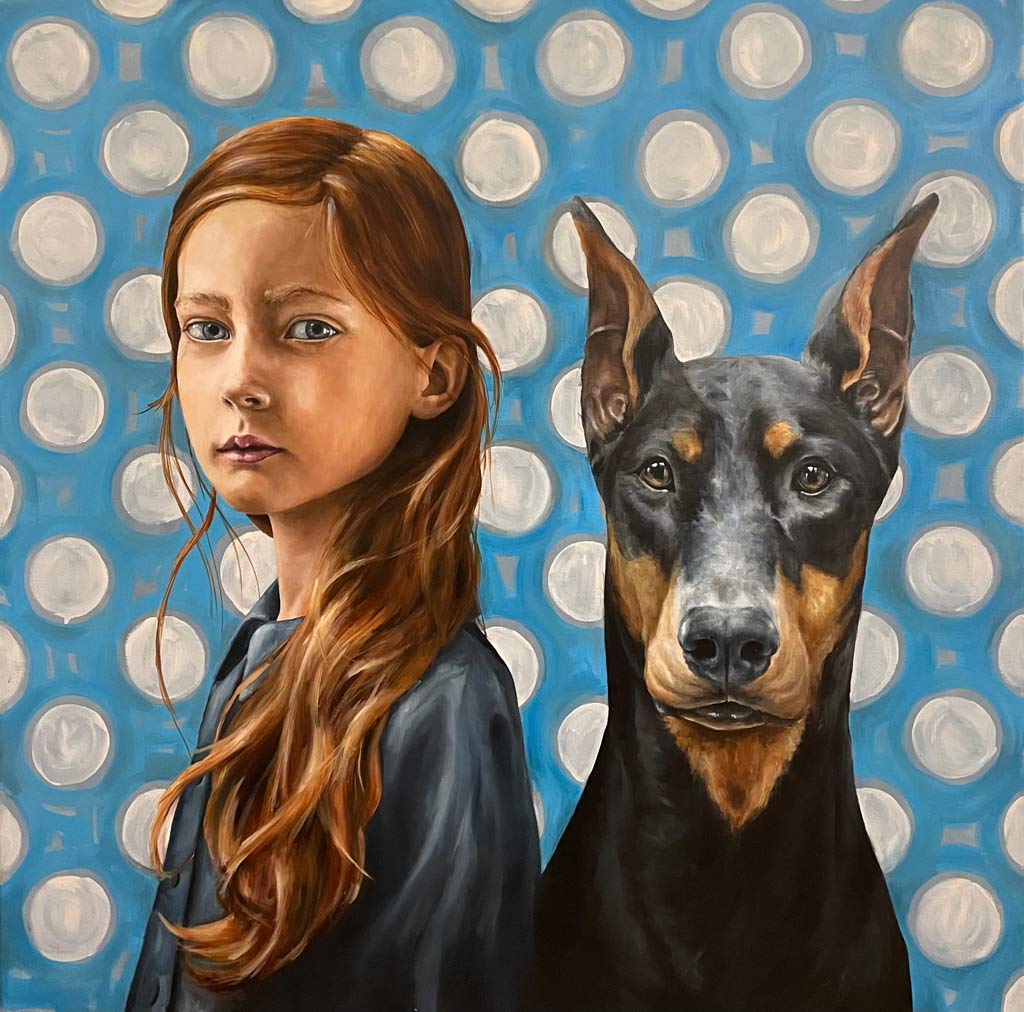 Nella serie Symbiosis l’artista ritrae una persona e ne interpreta l’animale guida, che diviene un animale simbiotico, un compagno interiore della propria vita, e può essere rivelato e scelto attraverso una profonda attrazione, un’emozione, un intimo richiamo, una sensazione di appartenenza. Con una visione contemporanea l’artista dipinge i due soggetti che si specchiano e dialogano in una fusione di anime, due mondi che divengono uno.